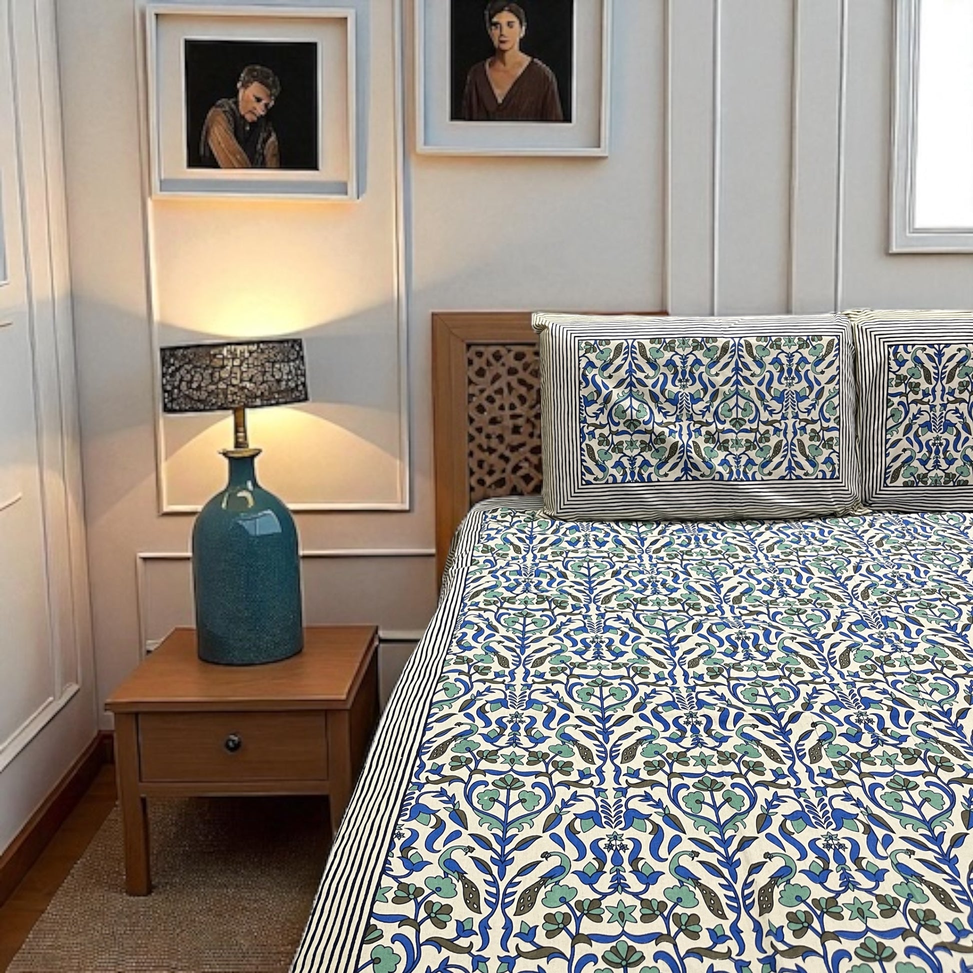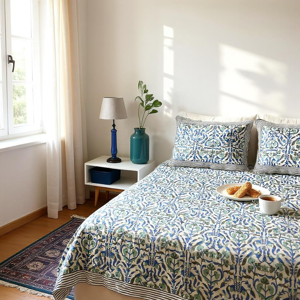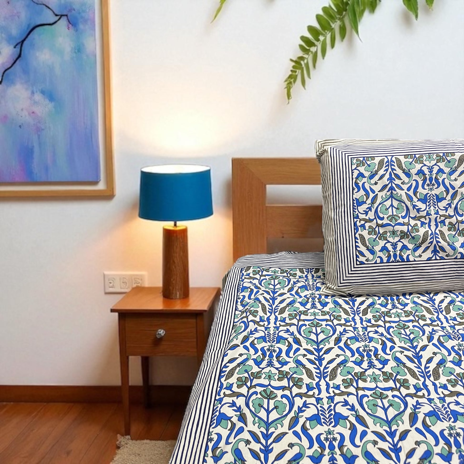 Refresh your space with our Blue Mirage Pure Cotton Bedsheet Set, thoughtfully designed to blend timeless pattern with breathable comfort. With its intricate floral-vine print and pure cotton weave, this set brings character and calm elegance to your everyday space.