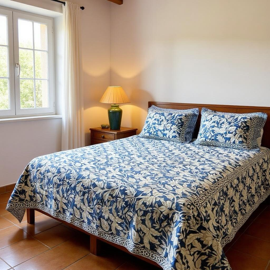 Refresh your space with our Blue Petal Pure Cotton Bedsheet Set, thoughtfully crafted to bring calm, comfort, and elegance into your everyday living. Featuring soft blue floral motifs and breathable cotton fabric, this set adds a serene, nature-inspired touch to your bedroom.