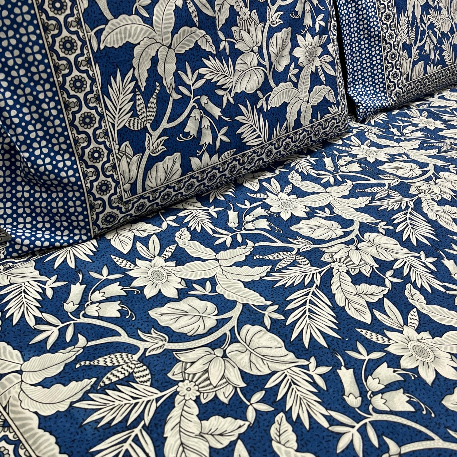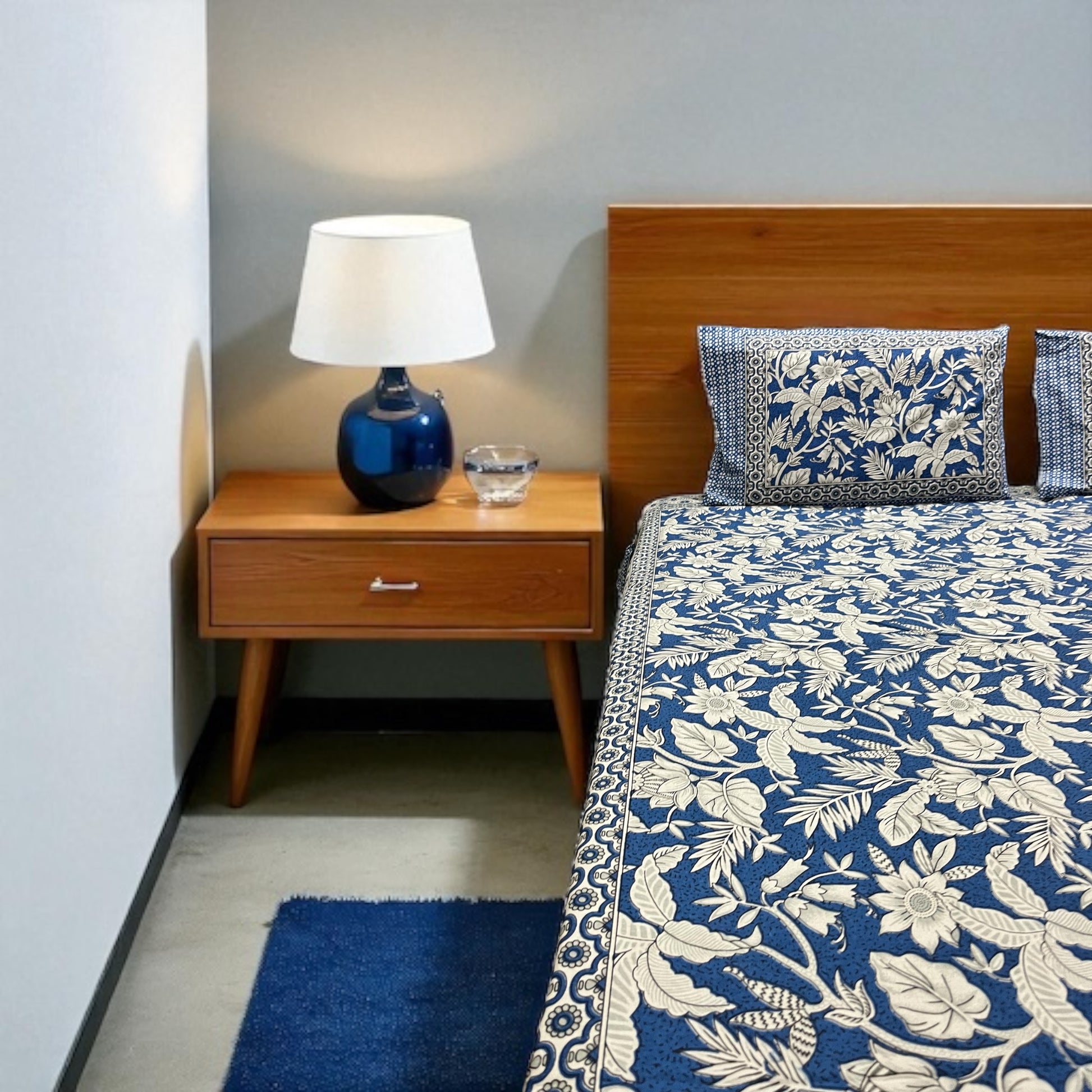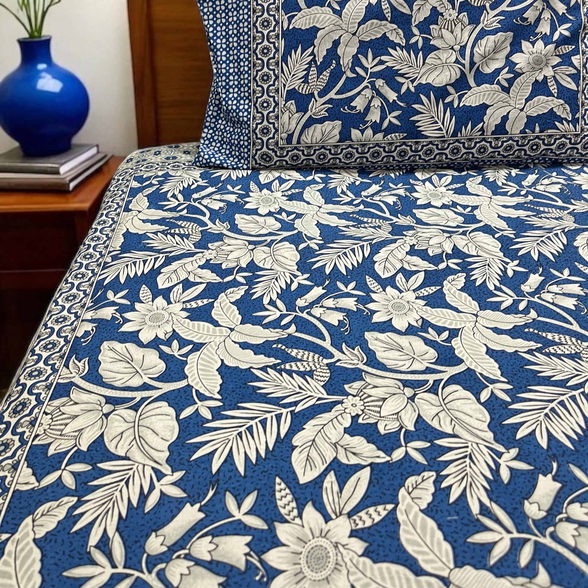 Signature Edit | Indigo Blossom 100% Cotton King Size Bedsheet