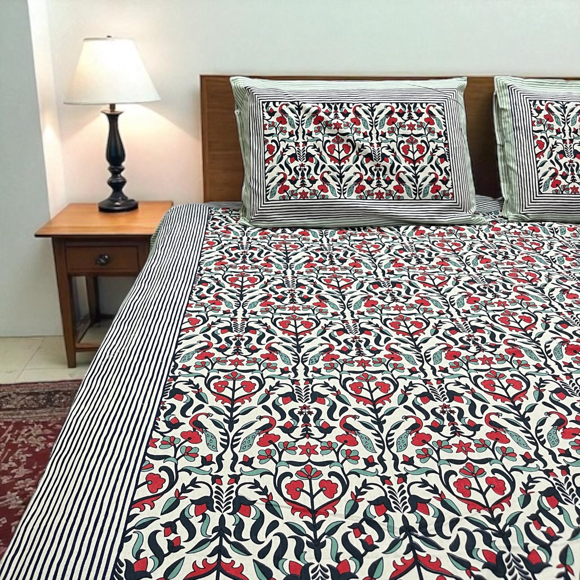 Premium Edit | Mughal Bloom 100% Cotton King Size Bedsheet